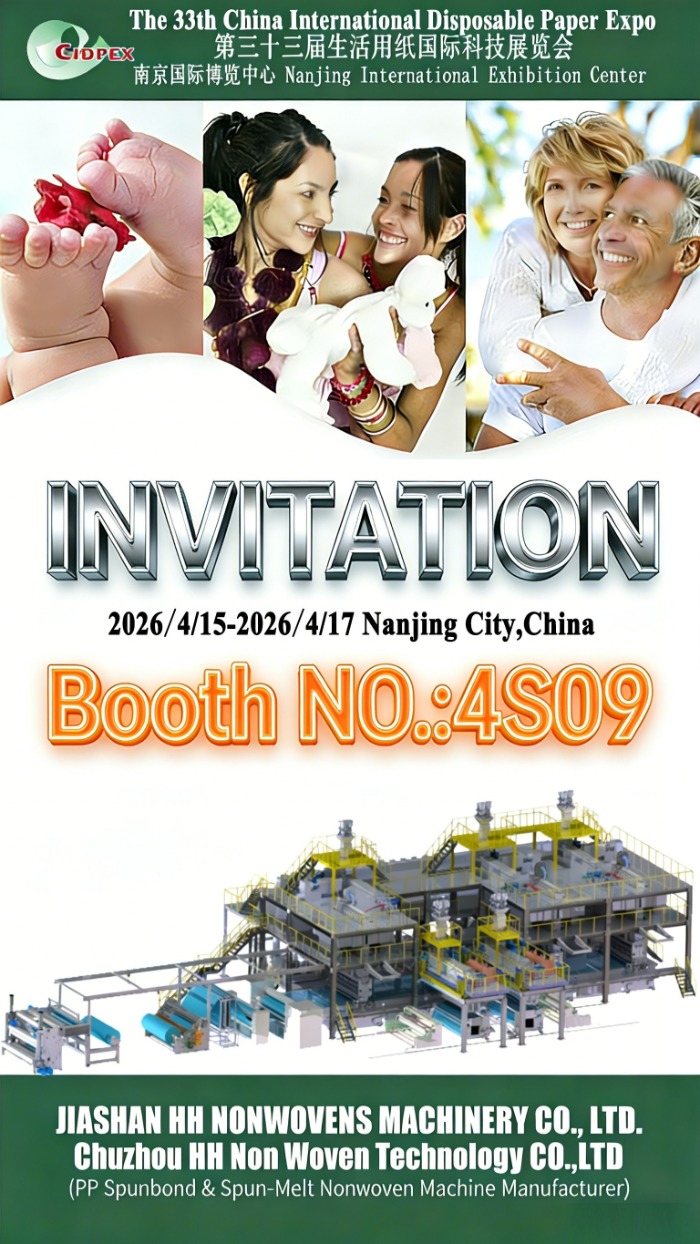 JIASHAN HH Vliesstoffe Machinery CO., LTD. und Chuzhou HH Non Woven Technology CO., LTD sind stolz, unsere Teilnahme an der bekannt zu geben 33. Internationale Ausstellung für Einwegpapier in China (CIDPEX 2026) , stattfindend von 15. bis 17. April 2026 , im Nanjing International Exhibition Center, Stadt Nanjing, China.