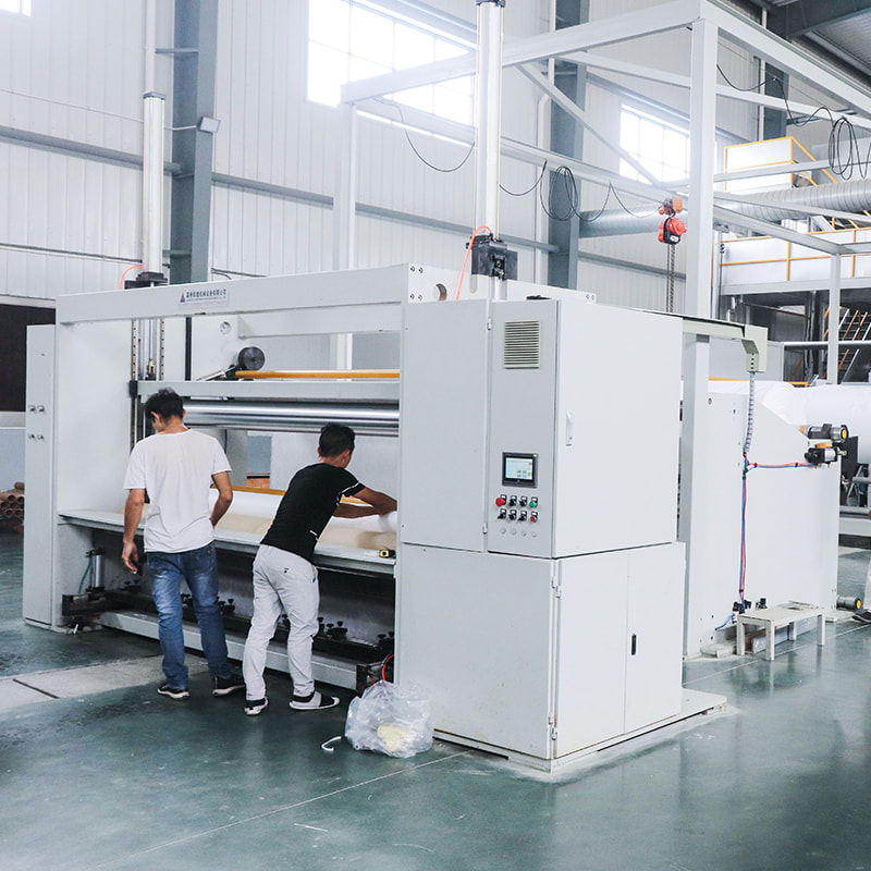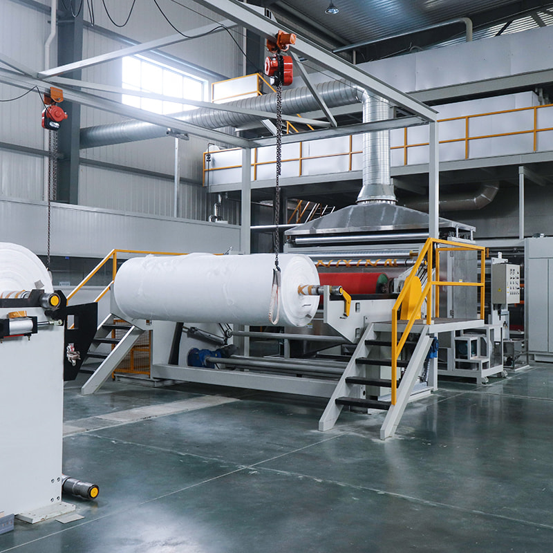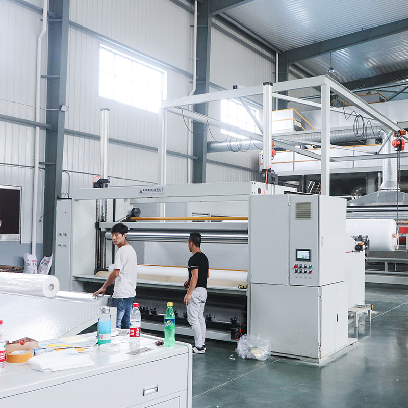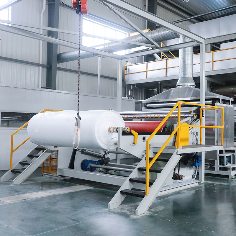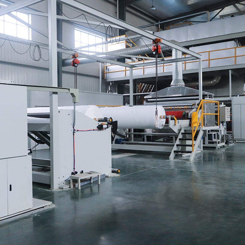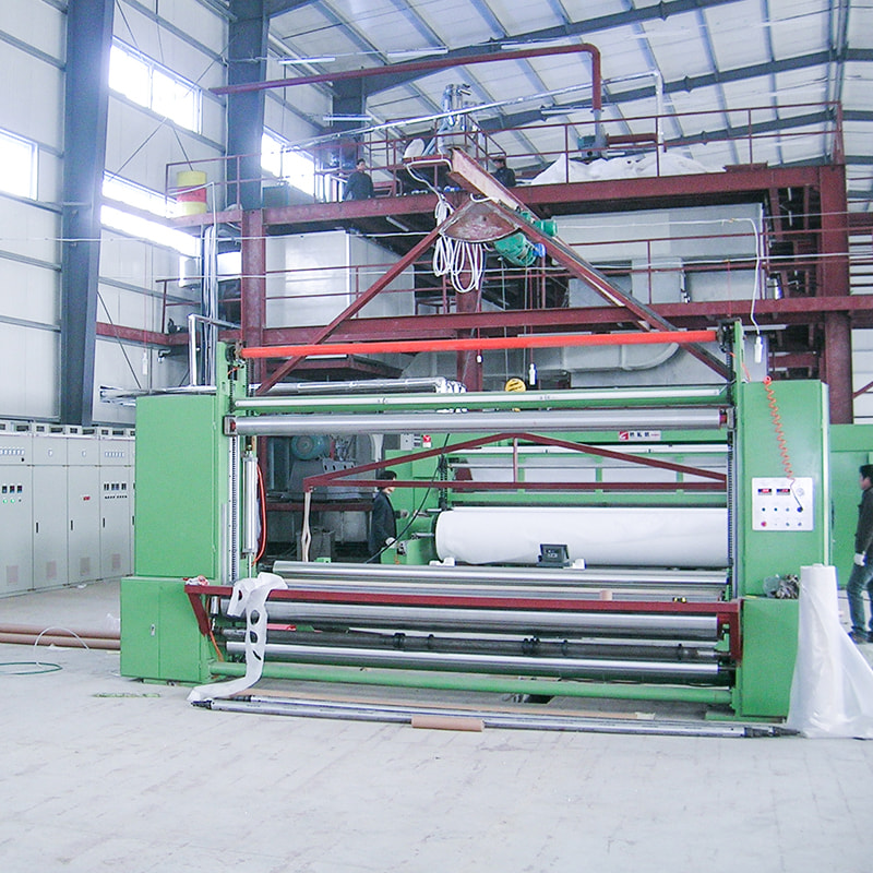 Eine PP-Spunbond-Vliesstoffmaschine wird zur Herstellung von PP-Spinnvliesstoff verwendet. Mit dem Rollenschneider in unserer Maschine kann der Stoff in jede beliebige Breite geschnitten werden, um unterschiedlichen Anforderungen gerecht zu werden. Die Maschinenlaufgeschwindigkeit beträgt 10–350 m/min, Filament-Denier: 1,8–2,3 Denier