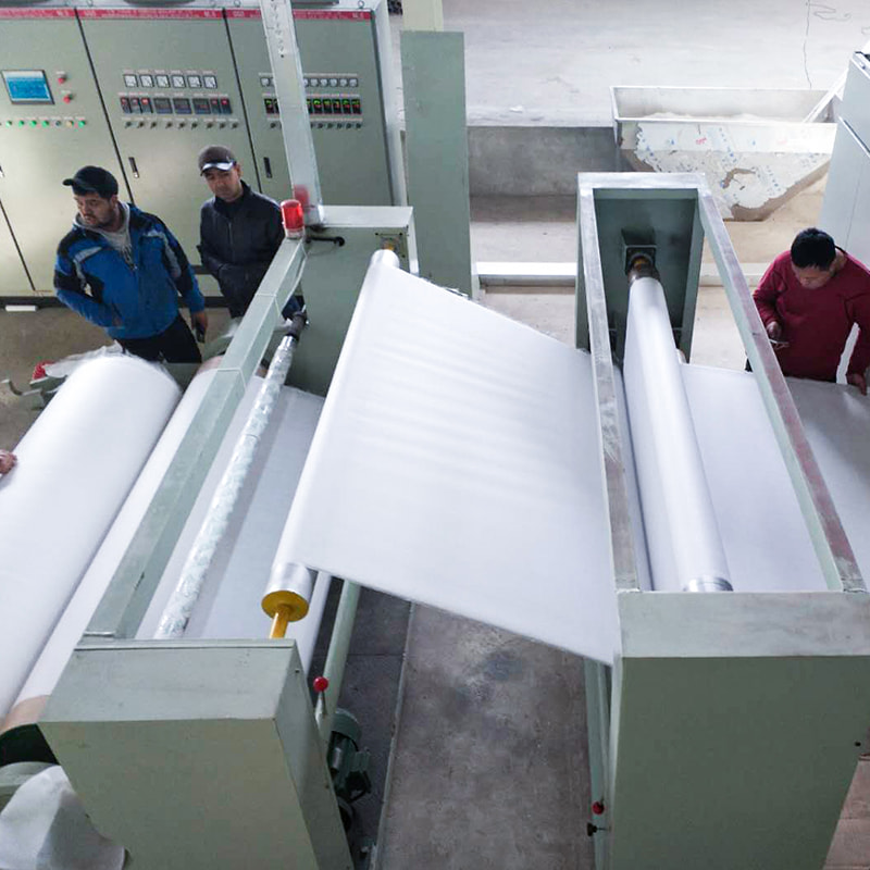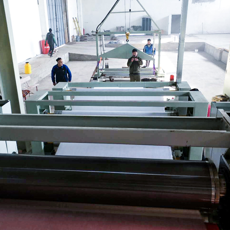 Eine PP-Spunbond-Vliesstoffmaschine wird zur Herstellung von PP-Spinnvliesstoff verwendet. Mit dem Rollenschneider in unserer Maschine kann der Stoff in jede beliebige Breite geschnitten werden, um unterschiedlichen Anforderungen gerecht zu werden. Die Maschinenlaufgeschwindigkeit beträgt 10–150 m/min, Filament-Denier: 1,8–2,3 Denier