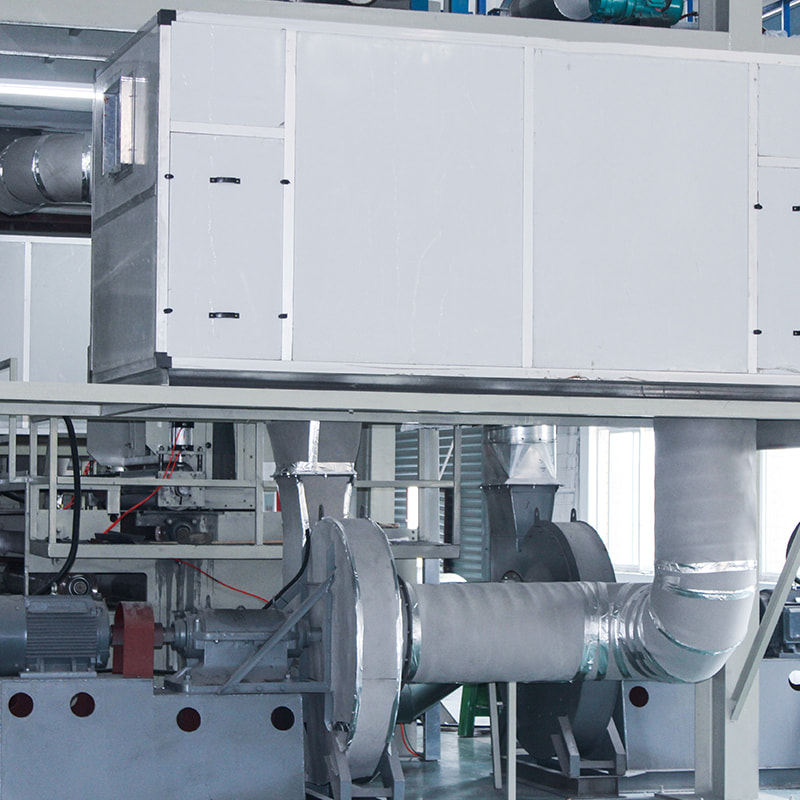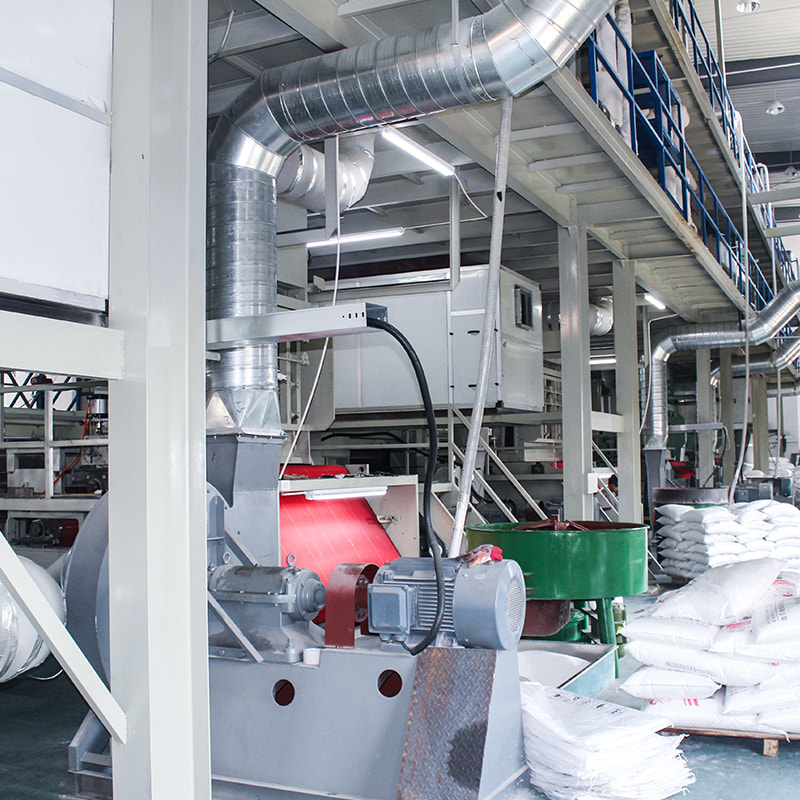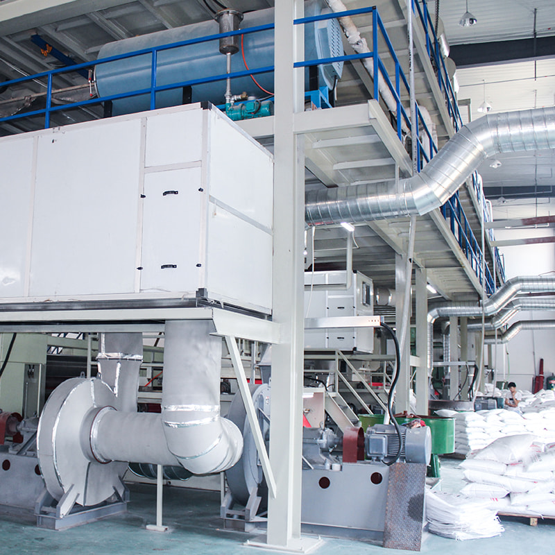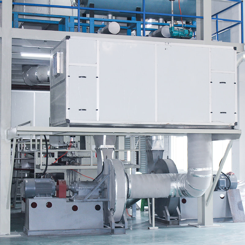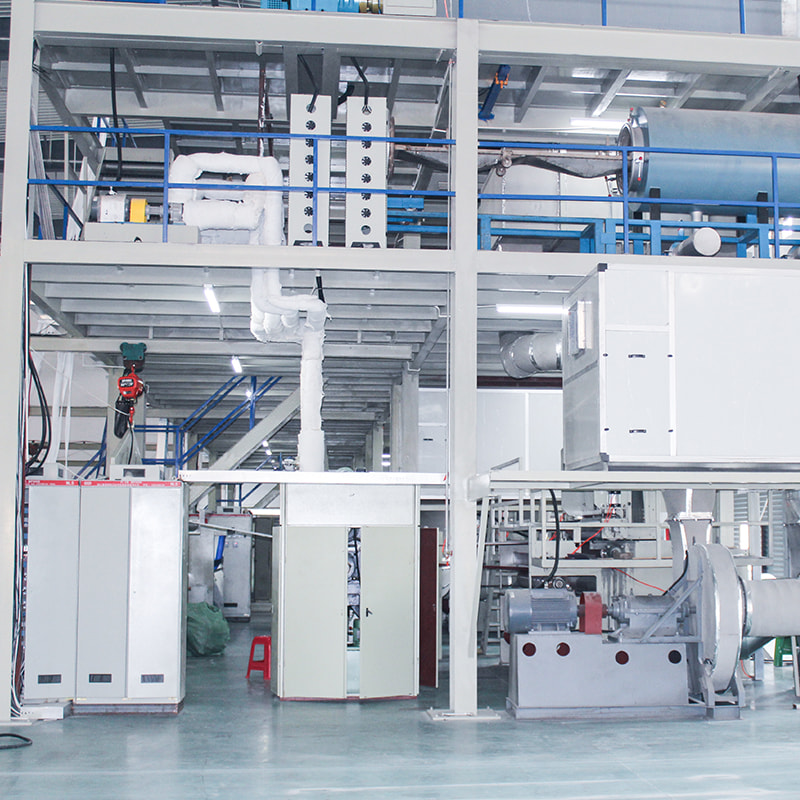 Eine PP-Spunbond-Vliesstoffmaschine wird zur Herstellung von PP-Spinnvliesstoff verwendet. Mit dem Rollenschneider in unserer Maschine kann der Stoff in jede beliebige Breite geschnitten werden, um unterschiedlichen Anforderungen gerecht zu werden. Die Maschinenlaufgeschwindigkeit beträgt 10–150 m/min, Filament-Denier: 1,8–2,3 Denier