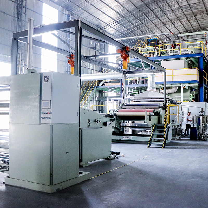 Eine PP-Spunbond-Vliesstoffmaschine wird zur Herstellung von PP-Spinnvliesstoff verwendet. Mit dem Rollenschneider in unserer Maschine kann der Stoff in jede beliebige Breite geschnitten werden, um unterschiedlichen Anforderungen gerecht zu werden. Die Maschinenlaufgeschwindigkeit beträgt 10–350 m/min, Filament-Denier: 1,8–2,3 Denier